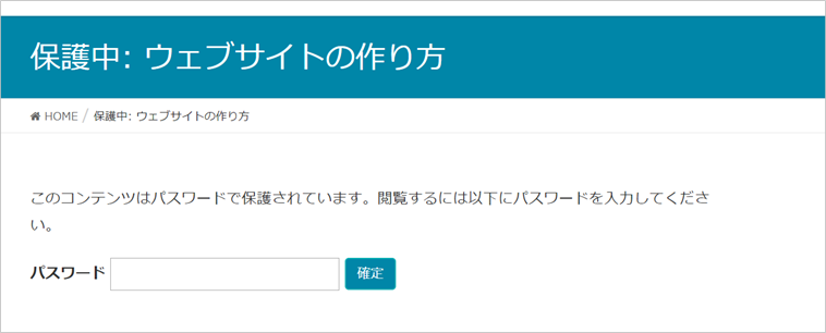 閲覧するには以下にパスワードを入力してください。」と表示され、パスワードを入れないとコンテンツを見れないように設定できたことが確認できます。